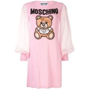Moschino Cotton Dress Teddy Embroidery In Confetti Pink