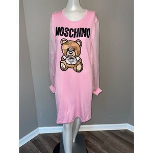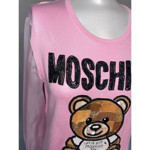 New with tags, excellent condition with one flaw. Pulling above the M in Moschino.