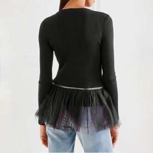 Moschino Couture Black Cardigan Sweater Jacket with Detachable Mesh Ruffled Hem