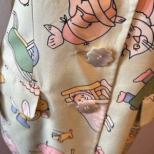 Moschino Couture Cat Dog Baby Cartoon Mint Green Silk Blazer Jacket Vint…