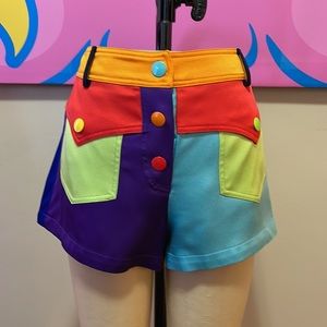 Date night gets sexy wearing these adorable color block shorts with heels and a silk shirt. Snap front closure.