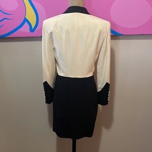 Be retro glam wearing this iconic tuxedo jacket by Moschino Couture featuring a color blocked two tone Double collar / Upside down Jacket. Brand runs small.