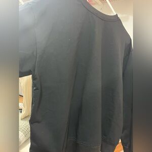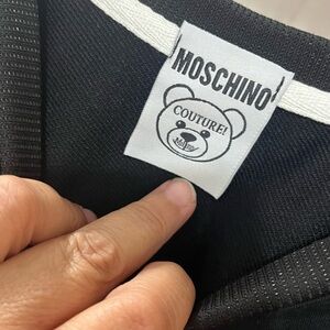 Elegant black Moschino sweatshirt. Features iconic branding. Perfect for a chic look. Lightly usages Preowned. 2 tiny stone missing as seen on photos. Size M-Large can’t recall