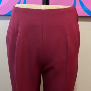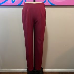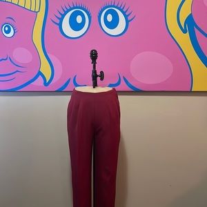 Be retro glam wearing these vintage wool pants by Moschino couture. This is a unique raspberry color. Perfect for fall, these pants will look great with winter white, black or gray.