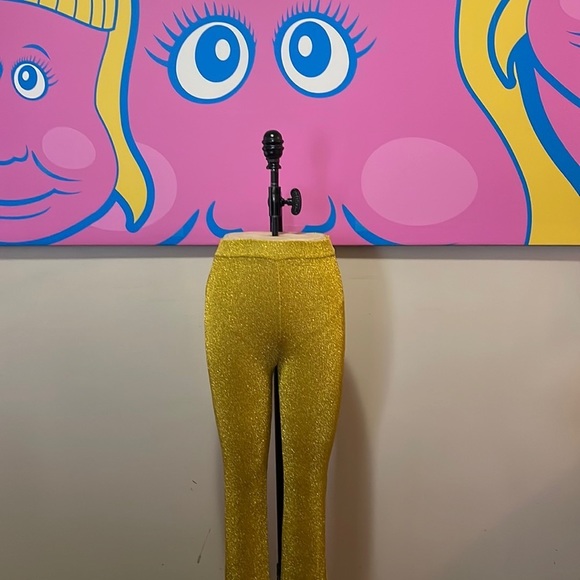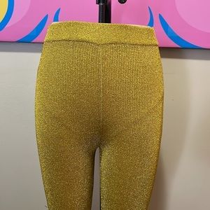 Moschino Couture knit pants in a yellow gold color are super fun and perfect for special occasion dressing. These are from the Fall 2018 Collection.