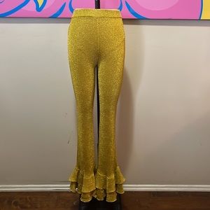 Moschino Couture Yellow Gold Knit Ruffle Hem Pants Clown Collection