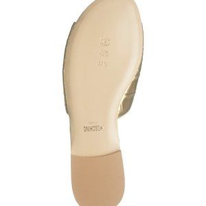 STUNNING!! A croc-embossed leather slide sandal topped by a polished logo plaque brings a sparkle to your casual wear.