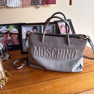 Moschino Genuine Calf Leather Tote Bag with Crossbody Made in ITALY EUC Grey