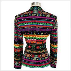 80s 90s collectible retro festive art deco business office career casual colorful multi color rainbow long sleeve stretch 1980s 1990s artsy fall autumn winter spring summer all seasons avant garde couture designer