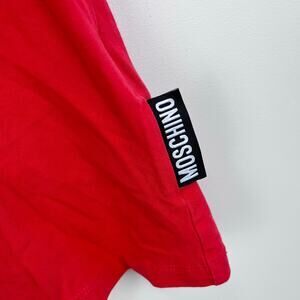 Moschino Kids Short Sleeve Red Teddy Bear Logo Pocket Tee Shirt. Boy or girl size 8. Casual short sleeve red top with signature embroidered toy bear on the chest pocket. No flaws noted.