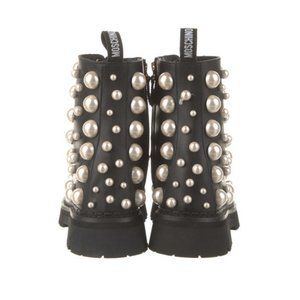 Moschino Leather Pearl Embellished Platform Combat Black Boots Size 36