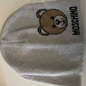 Moschino MADE IN ITALY Beanie Hat SILVER GLOW LUREX BEAR