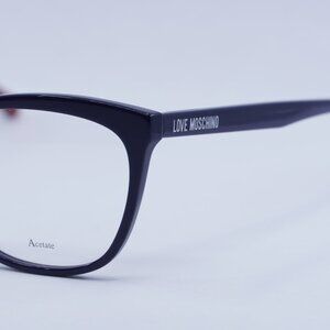 Authentic Moschino MOL506 0PJP00 eyeglasses in blue frame with red at the temples.