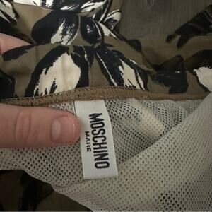 Moschino Mare Tan Black & White Hawaiian Floral Print Swim Trunks Size 48