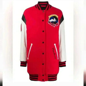 NWT Moschino Mickey Rat Wool Blend Varsity Jacket US 8. Bomber . pre-owned. excellent condition.
