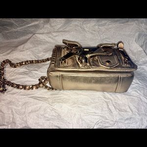 Gently used. Some wear on inside lining but no stains or holes just regular wear of inside material lining. rare color and style. extremely unique piece. Features gold hardware w:Moschino engraving even on zippers. So rare I wouldn't wait to make an offer. Original dust bag included. Celeb fave super rare. I sold one of these before , most of my bags go quick if you like don’t wait. I just found another one for resale this one has a tiny more leather fading so priced to sell barely noticeable