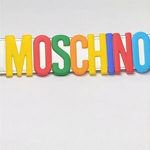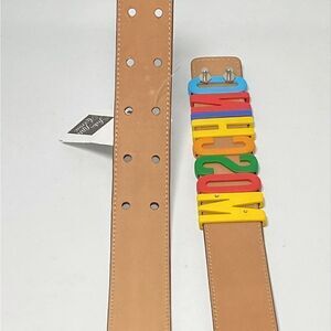 Moschino Multicolor Logo Buckle Leather Belt size 50/34”
