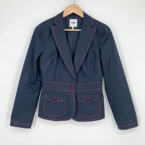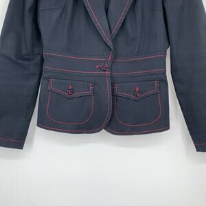Moschino Navy Blazer With Red Contrast Stitching Peak Lapel Jacket