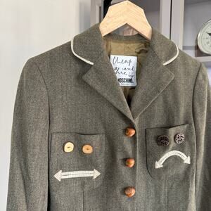 Moschino RARE Skirt Suit Nuts About You Olive Blazer Jacket Cheap & Chic XS