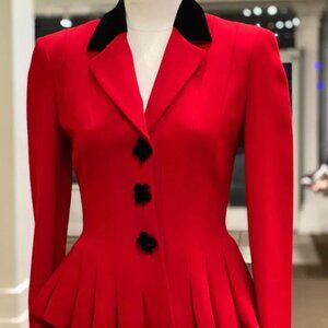 From the Alice in Wonderland Collection of 1994, this jacket is a great piece to wear today. Pair with black skinny pants and boots for a finished look. USA Size 8, A classic jacket, perfect for this upcoming season, CAN NEVER GO WRONG WITH A CLASSIC RED JACKET, a forever jacket will never go out of style, a Good Investment!