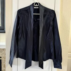 Moschino Silk Bow Tie Button up Women’s Size 8 Casual Shirt Navy Blue