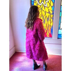 Moschino Size 6 Long Faux Teddy Fur Jacket Fuschia