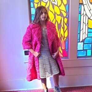 Moschino Couture Size 6 US / 40 Long Faux Teddy Fur Jacket Fuschia Size 6 Notch lapels Short sleeves Front hidden placket closure Snap front 3/4 sleeves Lined Faux fur is 69% mohair, 31% cotton; lining is 51% viscose, 49% acetate Dry clean Made in Italy Approximate flat lay measurements Chest 19 inches Length 37 inches New with tags Ships in 1-2 business days Monday- Friday from Texas Features: • Teddy Condition: New With Tags https://poshmark.com/closet/rhodonitedesign