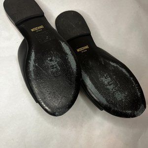 Gold plated Moschino slip-on style flats. These are a sz 38, but fit like a 7.5.