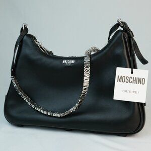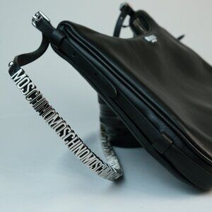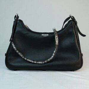 Moschino Small Lettering Shoulder Bag, Black Leather