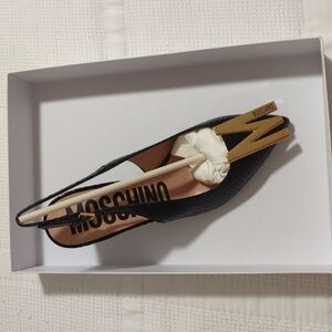 Moschino Snakeskin Embosses Leather Slingback Pump in black size US 7 / EU 37