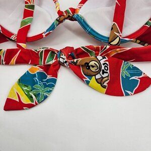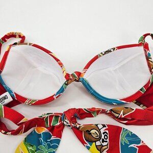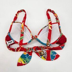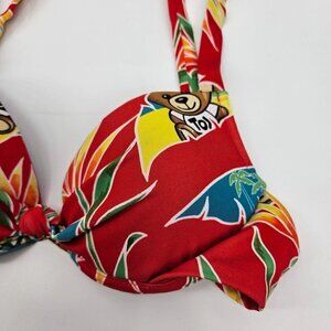 Moschino Swim Teddy Bear Tropical Print Bikini Top Red Tie Back Knot Front Underwire Padded Lightweight Women’s
