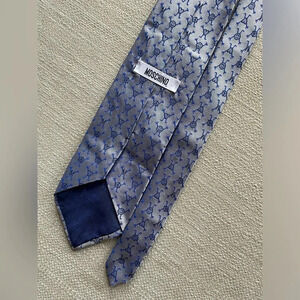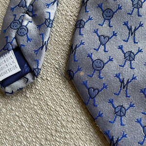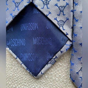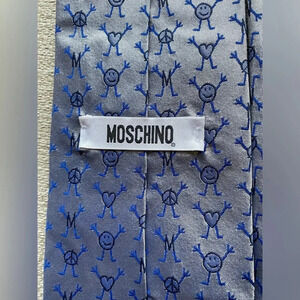 Moschino Tie Men’s 100% Silk Smiley Face Peace Heart Print Blue