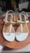 Chic Moschino sandals in glossy white. Adorned with bold gold chain accents. Perfect for stylish outings. Adjusting straps