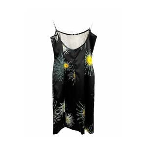 Moschino Y2K 90s Satin Scoop Back Printed BodyCon Spaghetti Strap Dress Black 6
