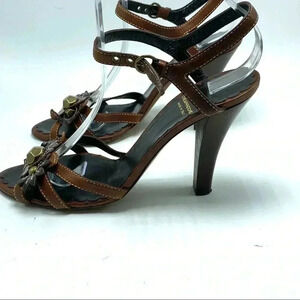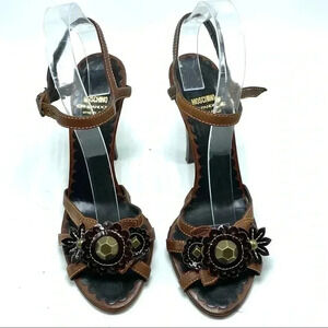 Moschino cheap and chic jeweled Leather ankle strap heels open toe 37 1/2