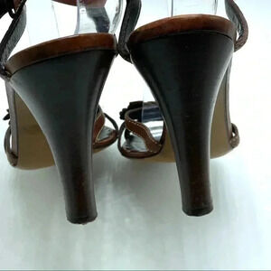 Moschino cheap and chic jeweled Leather ankle strap heels open toe 37 1/2 7.5 made in Italy