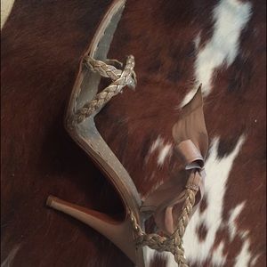 100% authentic. These are gently worn moschino cheap and chic ribbon tie sandals the braiding is silver leather and the color is like a nude / blush taupe. Open to offers.