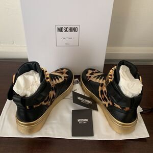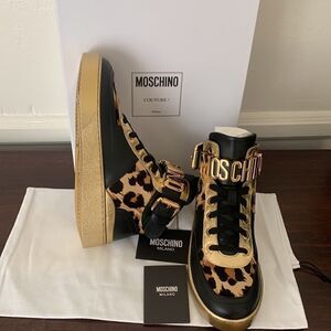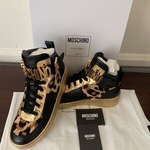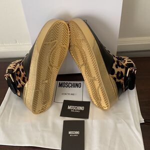Moschino genuine calf hair detail basket leopard print sneaker Size 7 new