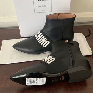 Moschino logo print soft top grain leather upper :lining bootie size 6 and 7
