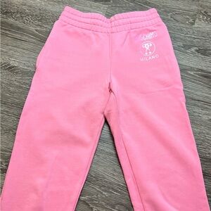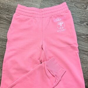 Moschino logo-print cotton sweat pants. Pink