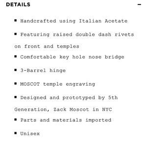 Selling a pair of Moscot Tatah glasses. They are a rose tinted set made of acetate. The color is absolutely stunning. They have my rx lenses in (new lenses -1.75) but can be switched out to match your personalized Rx. These are unisex glasses.