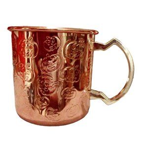 Listed for sale are Two (2) Pumpkin Imprinted 16 ounce Copper Coffee Moscow Mule Mugs with Stainless Steel lining. The stainless steel lining keeps the copper from leaching. These Copper Mugs are in excellent preowned condition, free of scratches and stains.