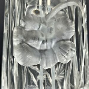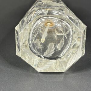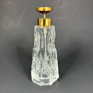 Moser Intaglio Perfume Bottle Atomizer Cut Floral Clear Glass Decoration Vintage. Measures approx. 5" tall.