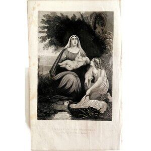 Moses Nursing In Bulrushes Steel Engraving 1859 Victorian Religious Art DWY5F