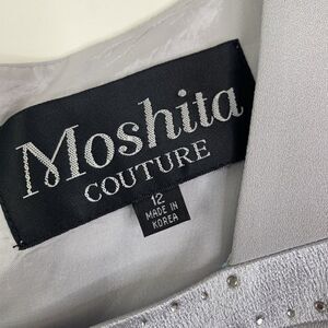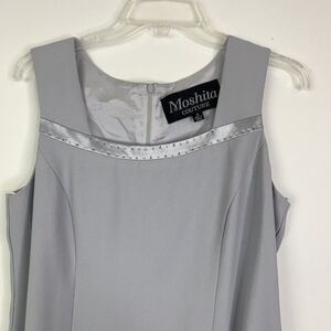 Vintage Moshita Couture Women's Column Maxi Dress Sz 12 Gray Lined Rhinestone Bling Sleeveless Long Length Evening Special Occasion Mother of the bride Wedding Party