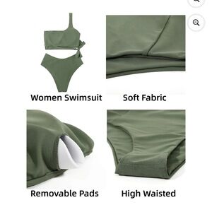 Moshu Green Asymmetrical One-Shoulder Bikini size medium.