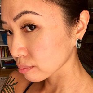 Super elegant modern art deco fashion earrings (studs). Pearlescent turquoise, gold, black, and silver. Worn once :)