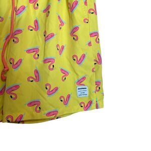 Mosmann Australia Lined Swim Trunks Shorts Small Yellow Pink Flamingo Print