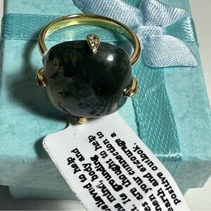 Moss Agate 14k Gold Plated 925 Sterling Silver Ring Size 7 NEW WITH TAGS