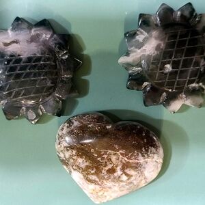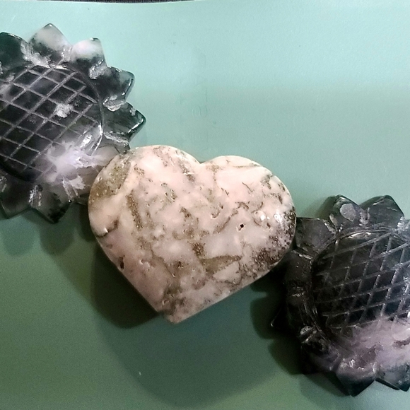 2 moss agate sunflowers and a gorgeous heart. beautiful bundle